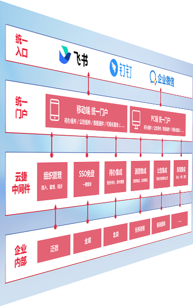对协作平台提供支持服务,,支持企业应用与协作平台对接,,,包含组织同步、、、、消息集成、、、待办集成等。。。。支持目前主流的协作平台:钉钉、、、企微和飞书。。。